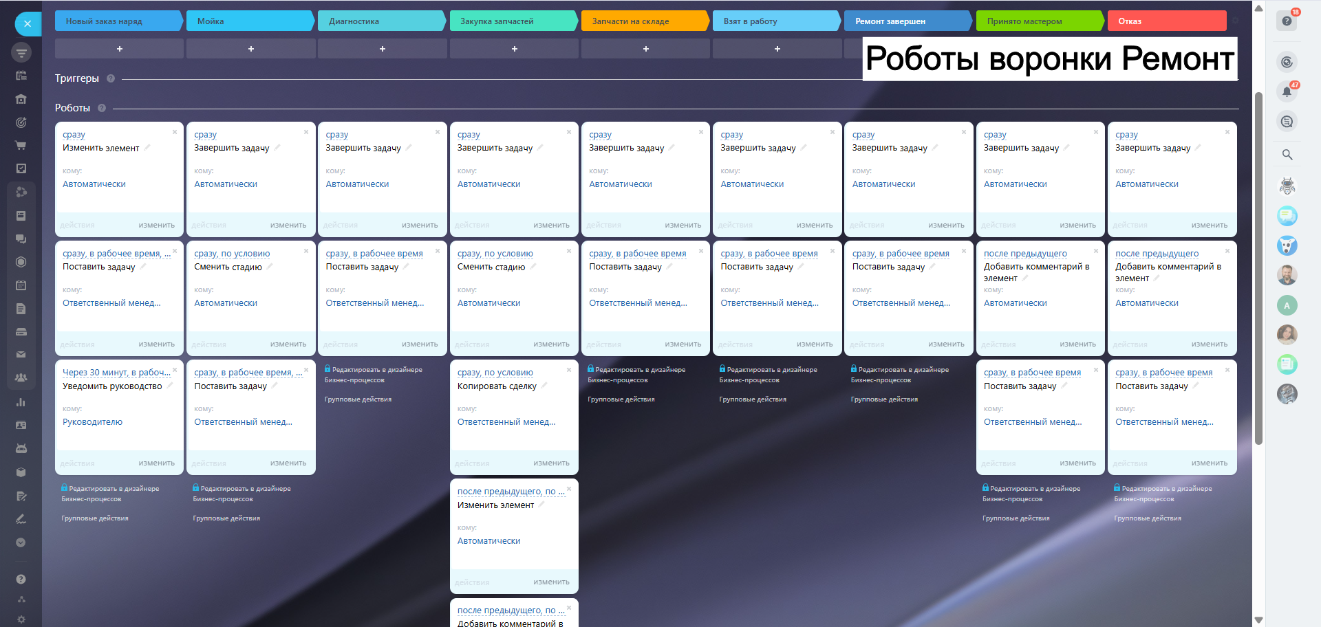 - расширение логики под нестандартные процессы (например, кузовной, сложные цепочки подрядчиков)