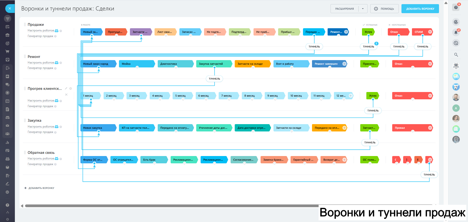 Показываем воронки, карточки и автоматизацию в реальном интерфейсе.