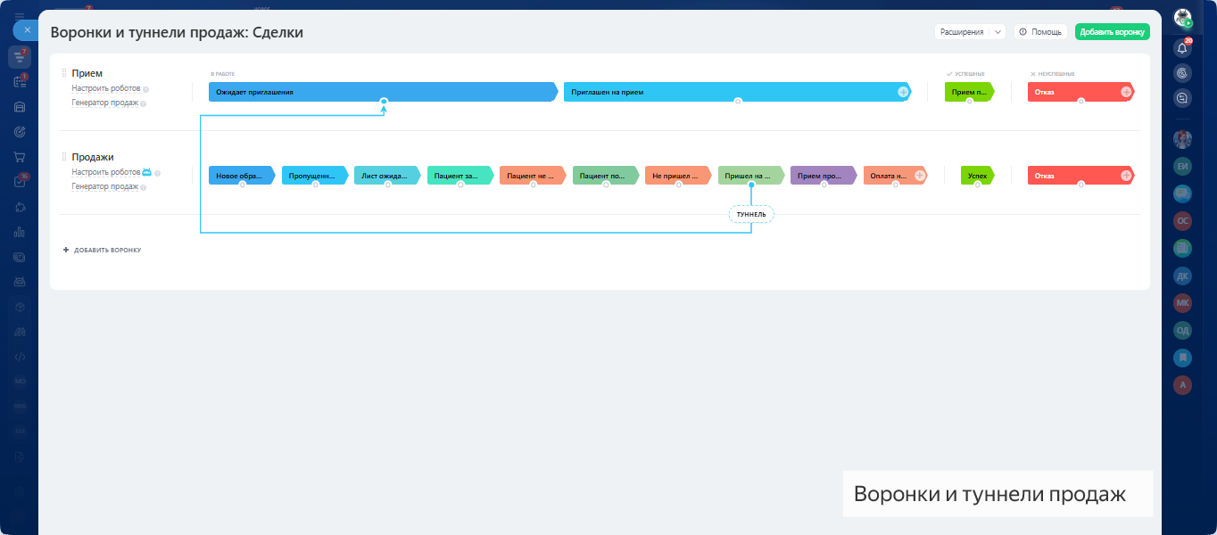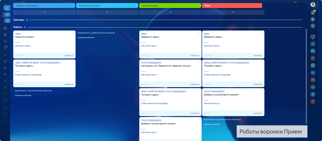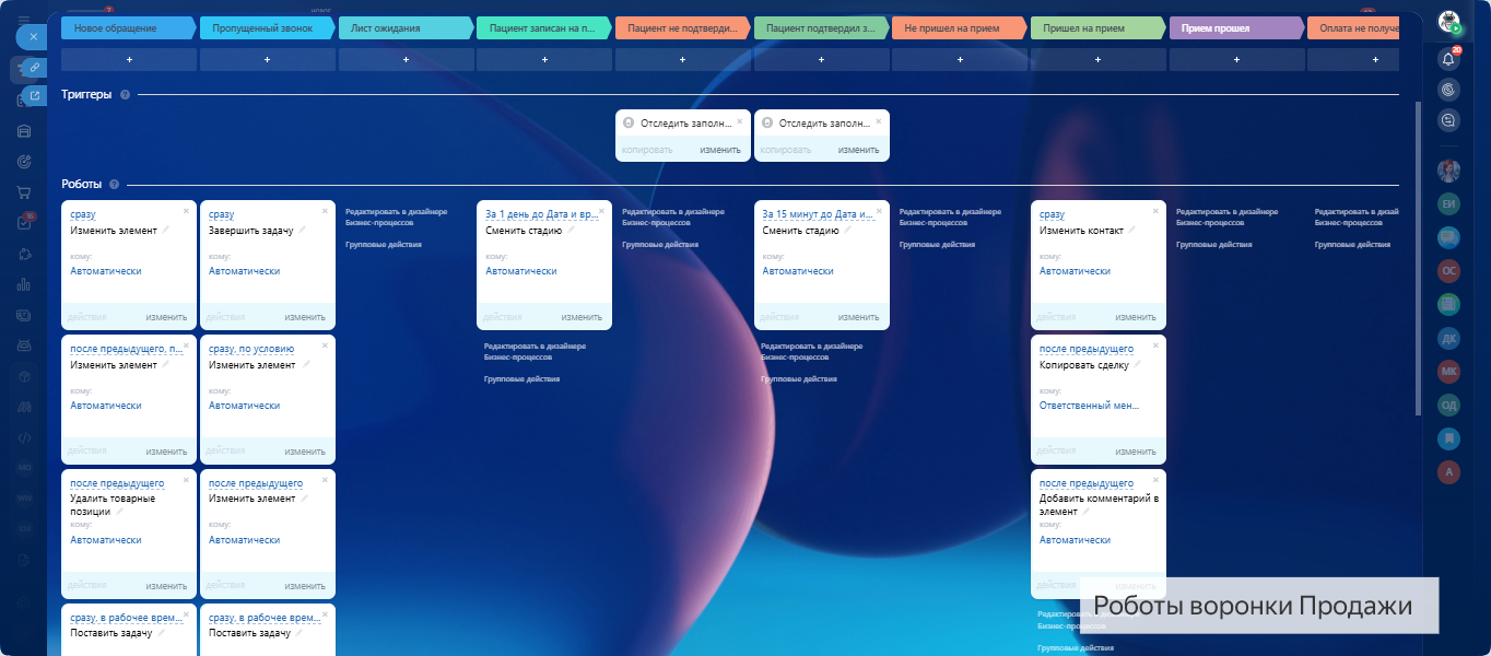 - Индивидуальная перестройка стадий под внутренние регламенты