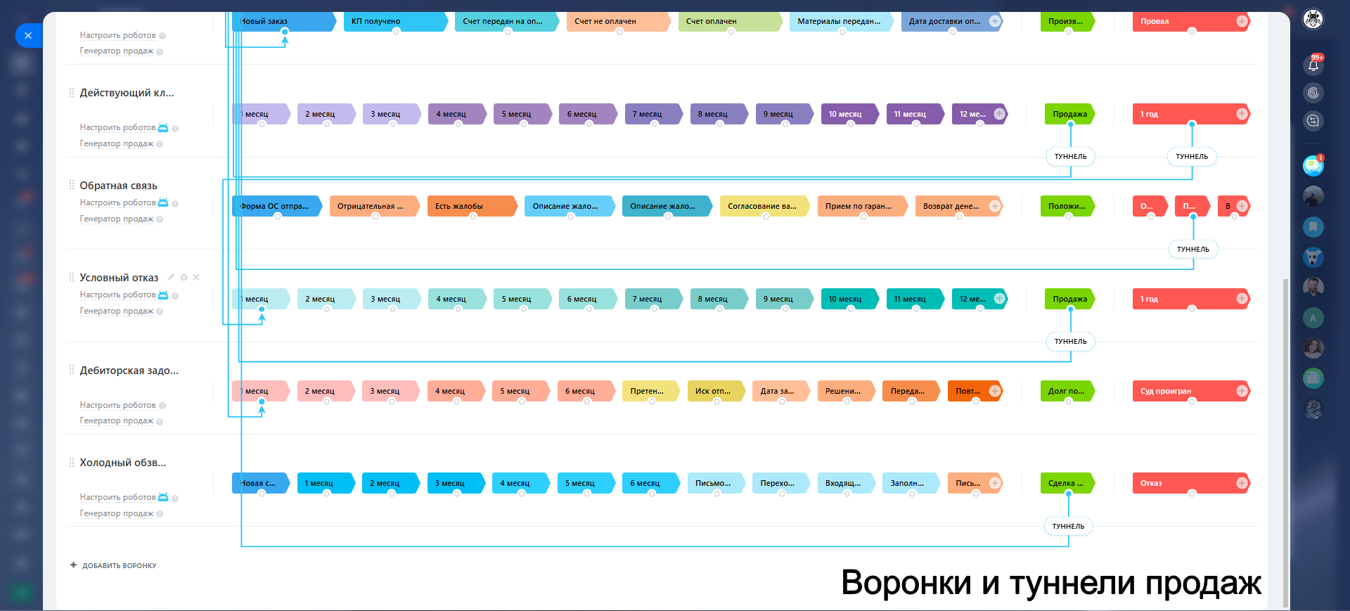 Воронка 1–6 месяцев + уведомления и задачи по претензии/иску