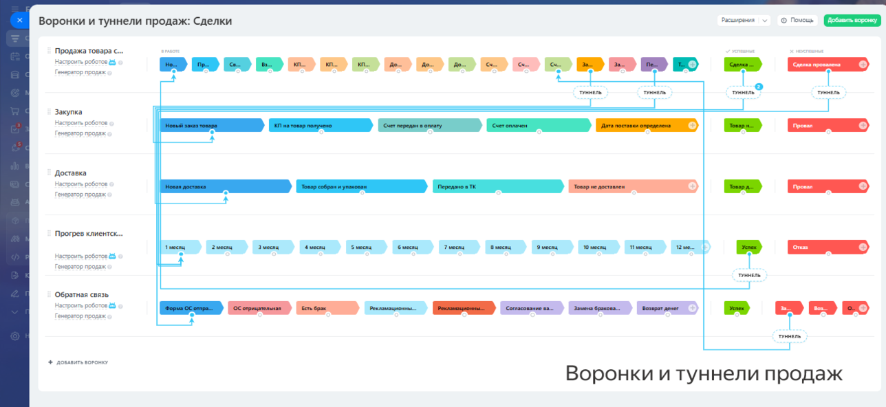 Настраиваем все 5 воронок, карточки и автоматизацию сразу.